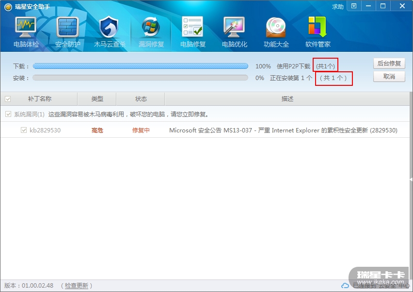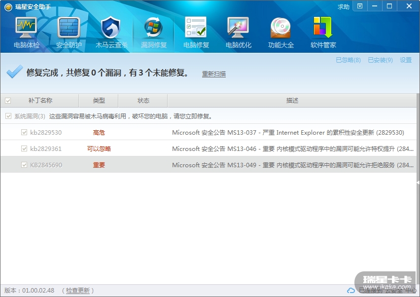 1、只要漏洞修复失败,对应的状态一栏就会显示空白,如图: