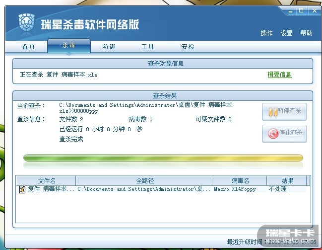 1、宏病毒查杀我这里测试不处理,客户那里可以处理,但是文件被破坏。。。。2、瑞星网络版对加密的这个附件不查杀么??解密后才能查杀,为什么?