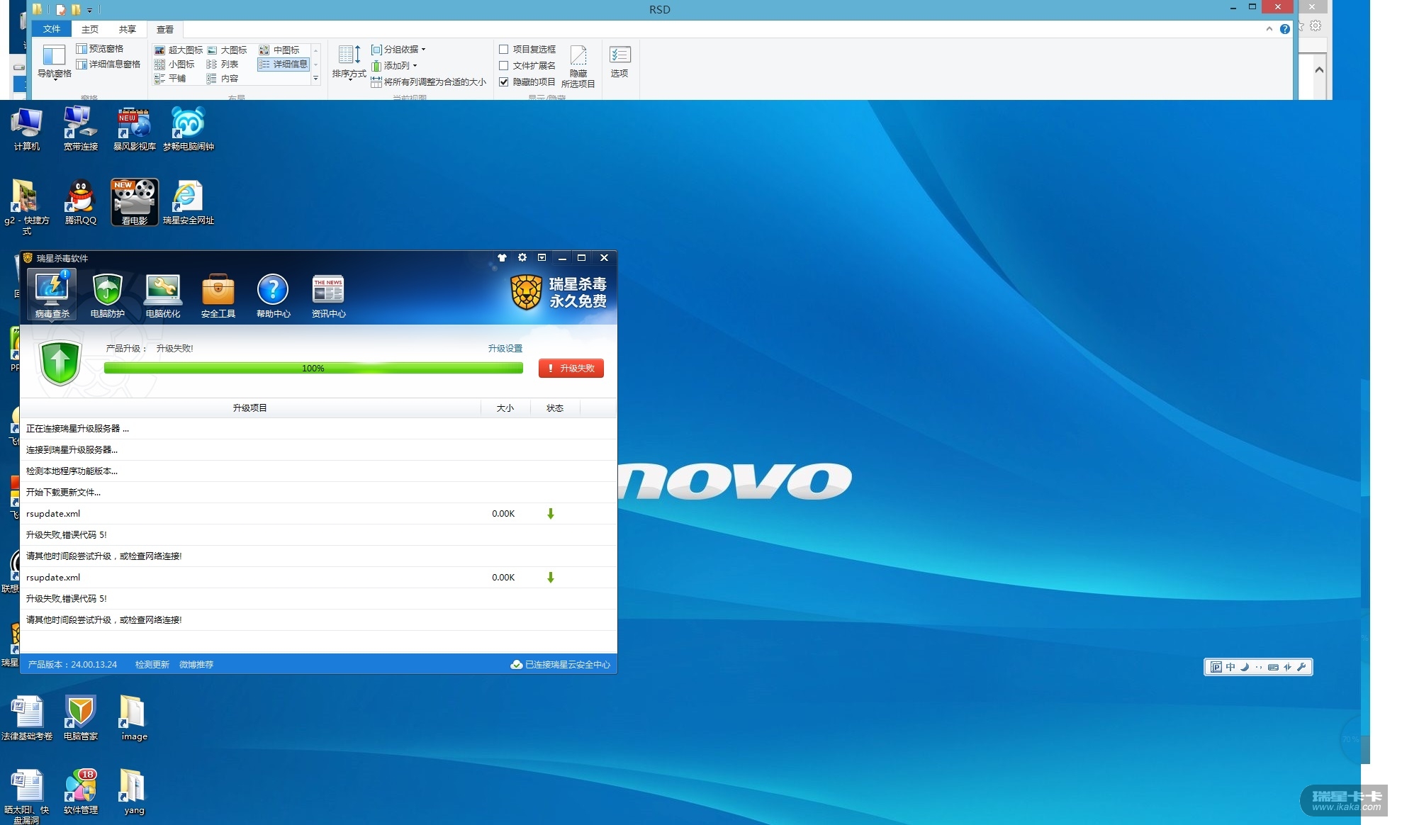 win8系统,原来瑞星一直能正常升级,前段时间老是无法升级,试着卸载重装后,还是无法升级。右击小绿伞选择软件升级,提示无法连接到瑞星升级服务器,试了好几次,都这样.以下是打开瑞星升级失败的截图.