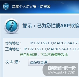 提示遭到ARP攻击,路由器MAC地址和电脑ARP -A的显示不同步。