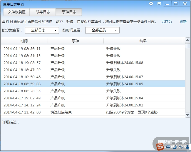 查看瑞星日志时,发现了“升级失败”的字样,是不是改变了一些细节还是瑞星BUG?