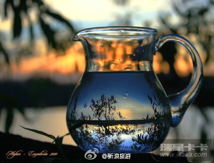 透过玻璃瓶,聚焦瓶中的景色,投射出真实世界的美。