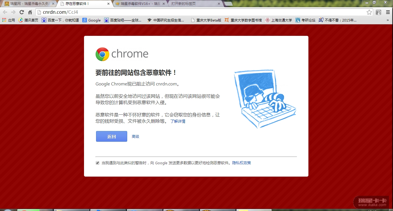在瑞星官网下载V16+和访问论坛是时会出现以下界面
