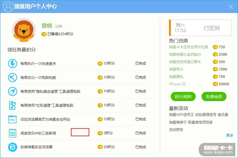 点击“阅读资讯中的三条新闻”时,弹出“安全资讯”中的网页,结果显示的却是“已完成”的提示。