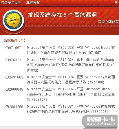 [其他问题] 系统有5个漏洞瑞星不能修复