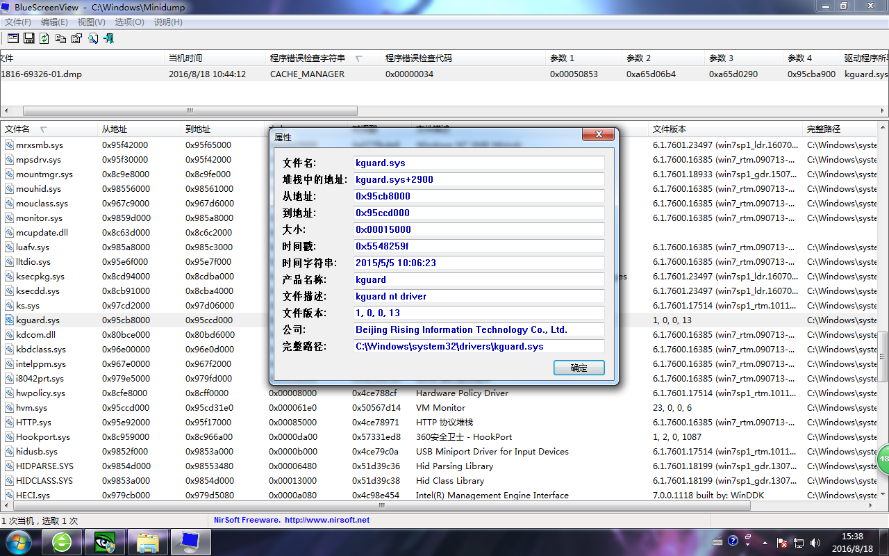 [讨论] kguard.sys 是什么文件 蓝屏了