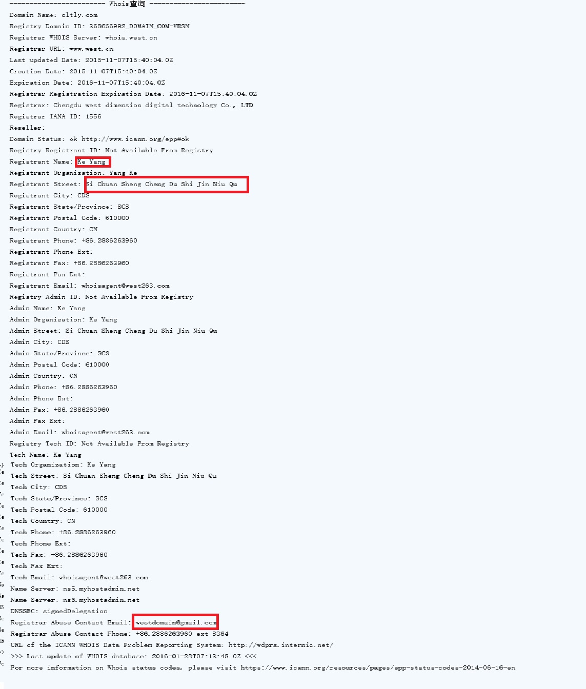 下面我们看一下这个钓鱼网站,这个网址的托管机房在香港,而注册的信息是成都金牛区