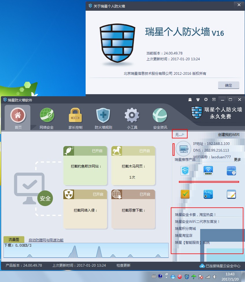 瑞星个人防火墙V16
