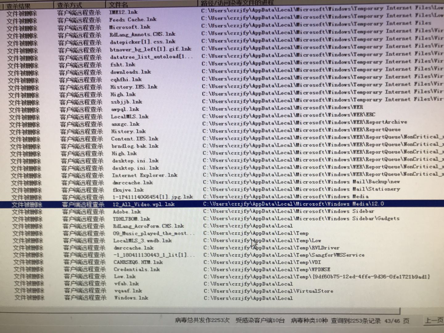 只要有这个病毒,数量都在几百到几千,一开始没在意,现在数量越来越多,目前无法找到病毒的来源,网上说这是瑞星误杀,求解决方法