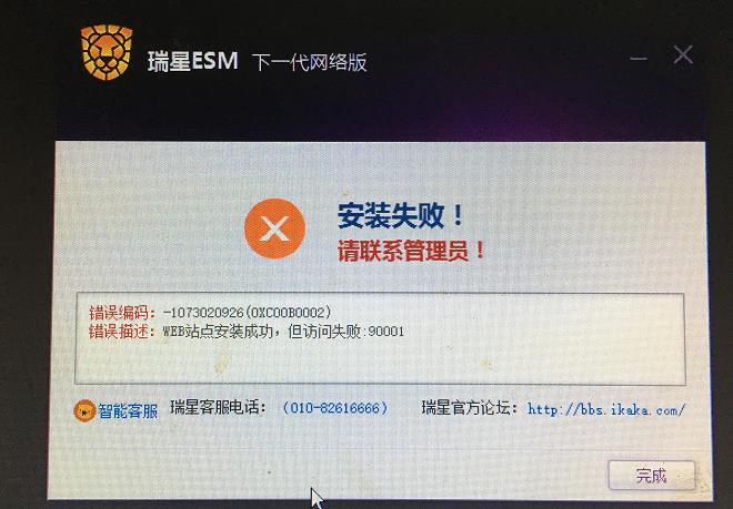 最近单位准备在内网安装瑞星终端管控软件ESM,在内网服务器R730上安装时,出现报错!请协助处理!报错截图