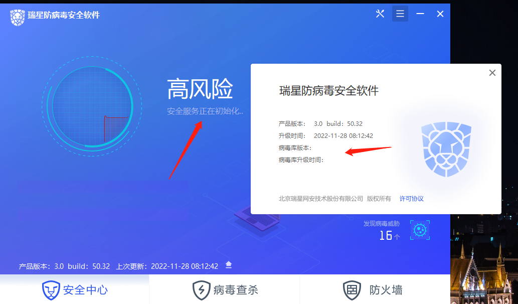 操作系统及补丁情况: Windows 10 专业版 21H2 19044.2130 Windows Feature Experience Pack 120.2212.4180.0浏览器及版本: chromium94.0.4606.71\IE 11.789.19041.0瑞星软件版本: 3.0 build:50.32 34.1128.0001涉及的其他软件及版本: 问题现象: 一直显示在安全服务还在初始化出现问题前的操作步骤: 未主动进行什么操作问题能否复现: 偶发相关附件:
