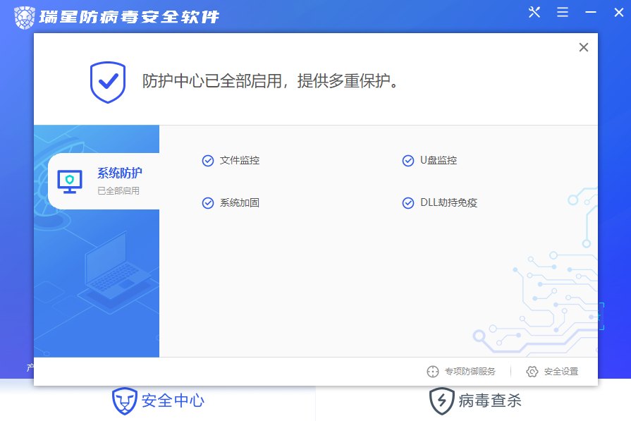 瑞星防病毒安全软件,是不是精简了,原来系统防护是14个,带有防火墙了。